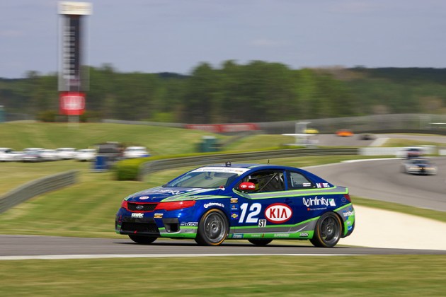 Running in the home event for both Kinetic Motorsports and Kia Motors Manufacturing Georgia, the former series champions brought No. 12 Infinity Audio Kia Koup home in tenth at Barber Motorports Park for round three of the 2011 GRAND-AM Continental Tire Sports Car Challenge championship after high temperatures saw the handling on the machine keep the duo from fighting for a return to the Barber Park podium.