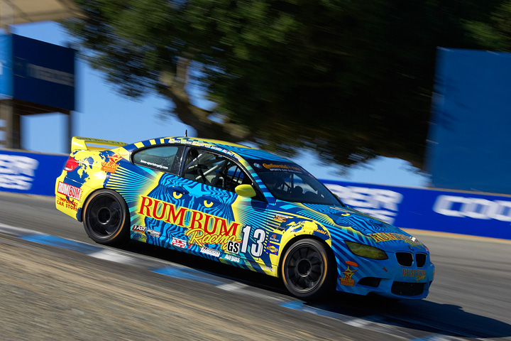 MONTEREY, Ca., 8 July – The No. 13 Rum Bum Racing BMW M3 piloted by Nick Longhi and Matt Plumb will start from the ninth position on the grid for the Continental Tire Sports Car Festival Powered by Mazda at Mazda Raceway Laguna Seca. While the blue and yellow Rum Bum machine has been accustomed to starting closer toward the front of the field this year, the spot on the inside of the fifth row didn’t concern the squad much.